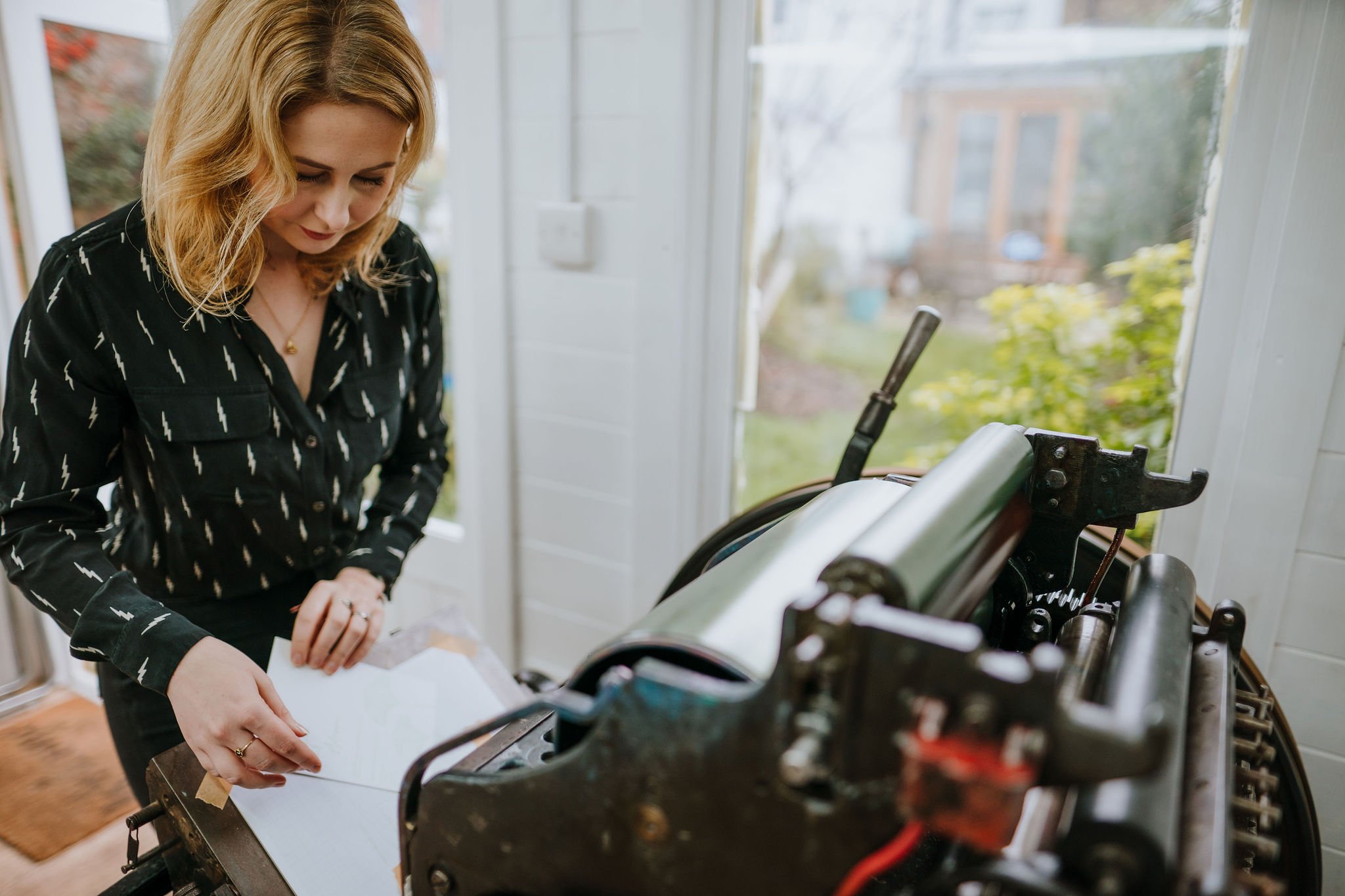 The heart of my studio is my beautiful 1930s Vicobold press. A cast-iron beast of a machine, she’s seen nearly a century of printing history – and yet still runs with a rhythm and weight that modern technology can’t replicate. I sometimes talk to her (and she occasionally answers).