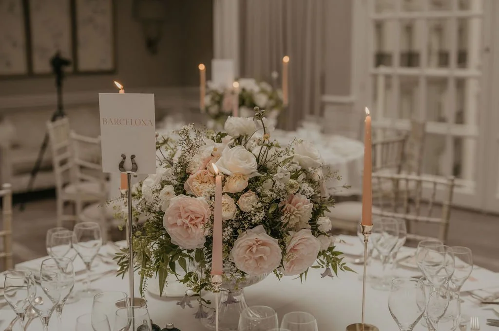 Back at The Landmark, after a drinks reception in the Palm Court it was time for the wedding breakfast, with beautiful florals provided by Billingshurst-based Raven & Ryegrass, who specialise in relaxed, sumptuous and refined floral arrangements. The room was styled to perfection by Minnie of MRS Weddings, and letterpressed table names, place cards and menus provided by Ink & Paper to match the beautiful blush colour palette.